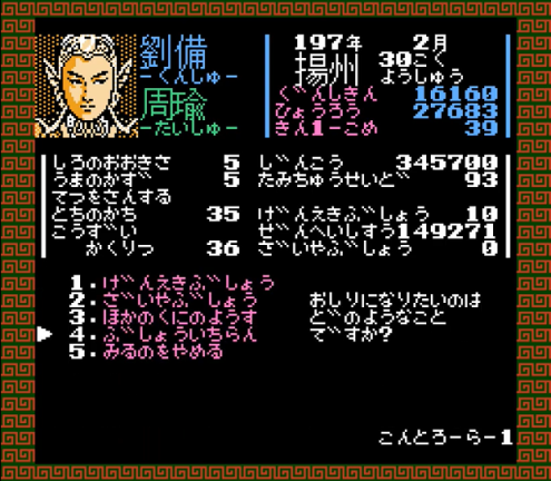 注意事項與小技巧、士兵忠誠度上升計算、武將資料列表 (光栄, 三國志 / FC, 1988)